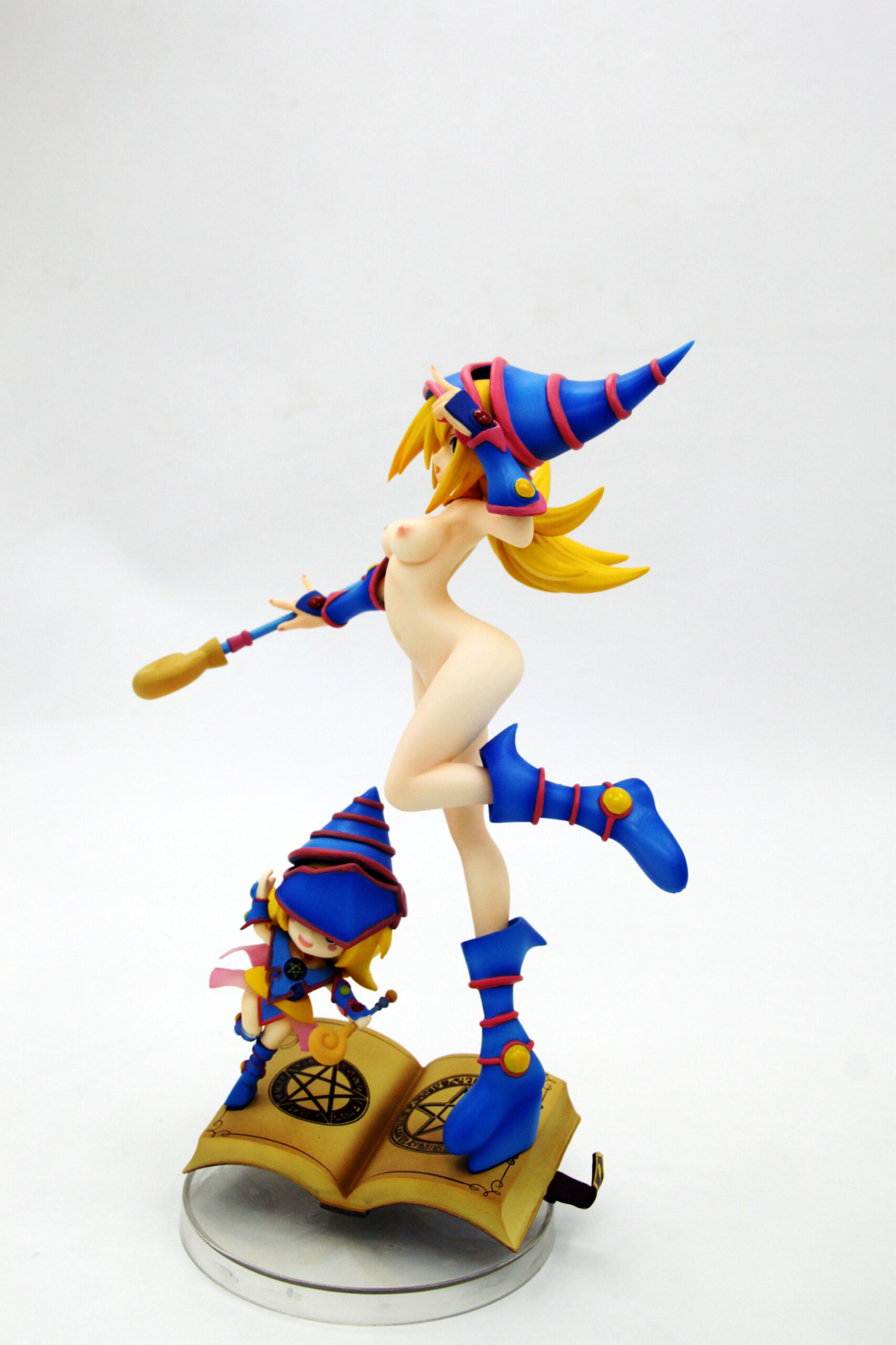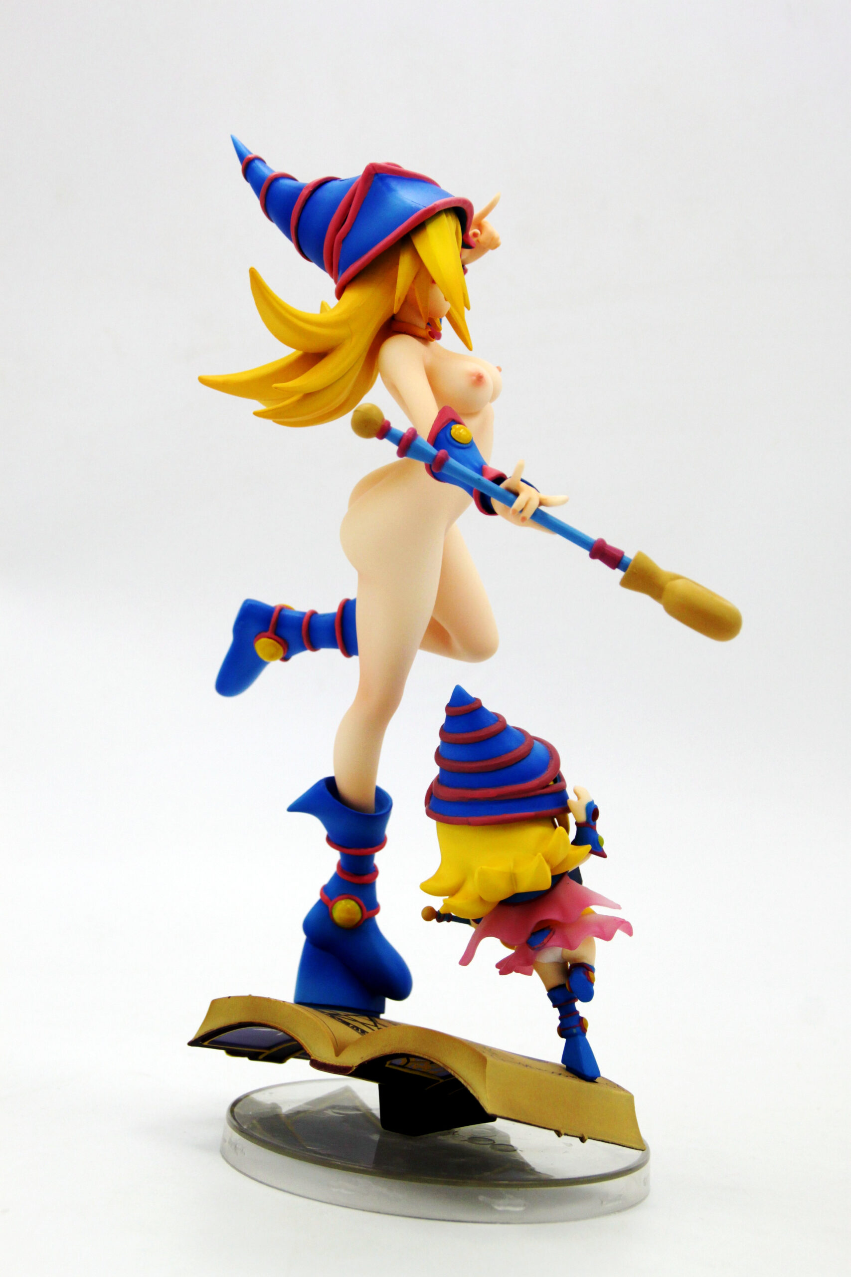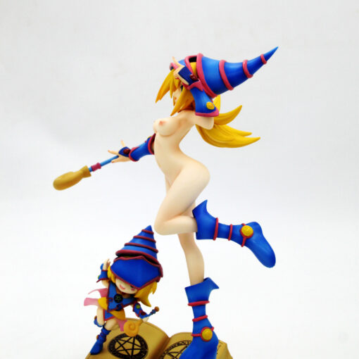Double the magical charm with this enchanting 1/6 scale figure set featuring both the iconic Dark Magician Girl and her adorable chibi companion from the Yu-Gi-Oh! universe.